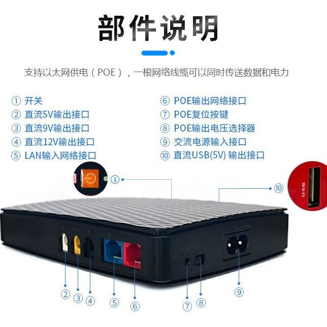 Mini UPS Shanpu de 8800mAh, Fuente de Alimentación CC para Router de Vigilancia ONU con Salida PoE