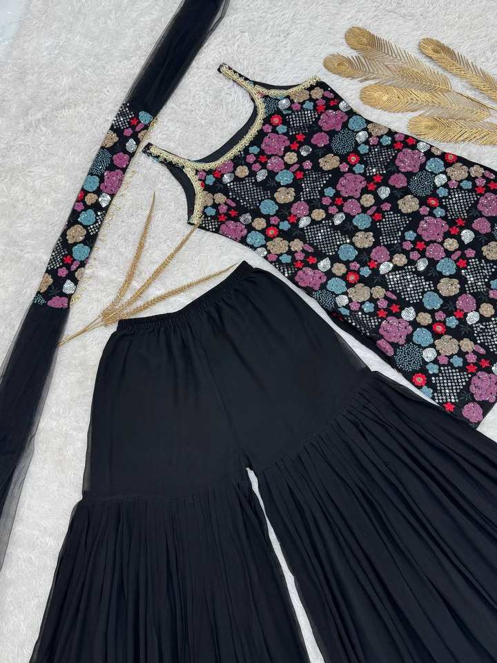 Feature:Straight Kurta Sharara & Dupatta set