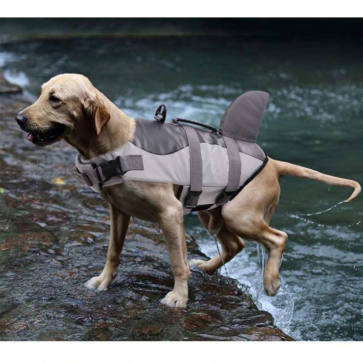 Chaleco salvavidas de aleta de tiburón para perros Ripstop 600D Oxford mango de seguridad anillo en D divertido seguro para aventuras acuáticas productos para mascotas más vendidos