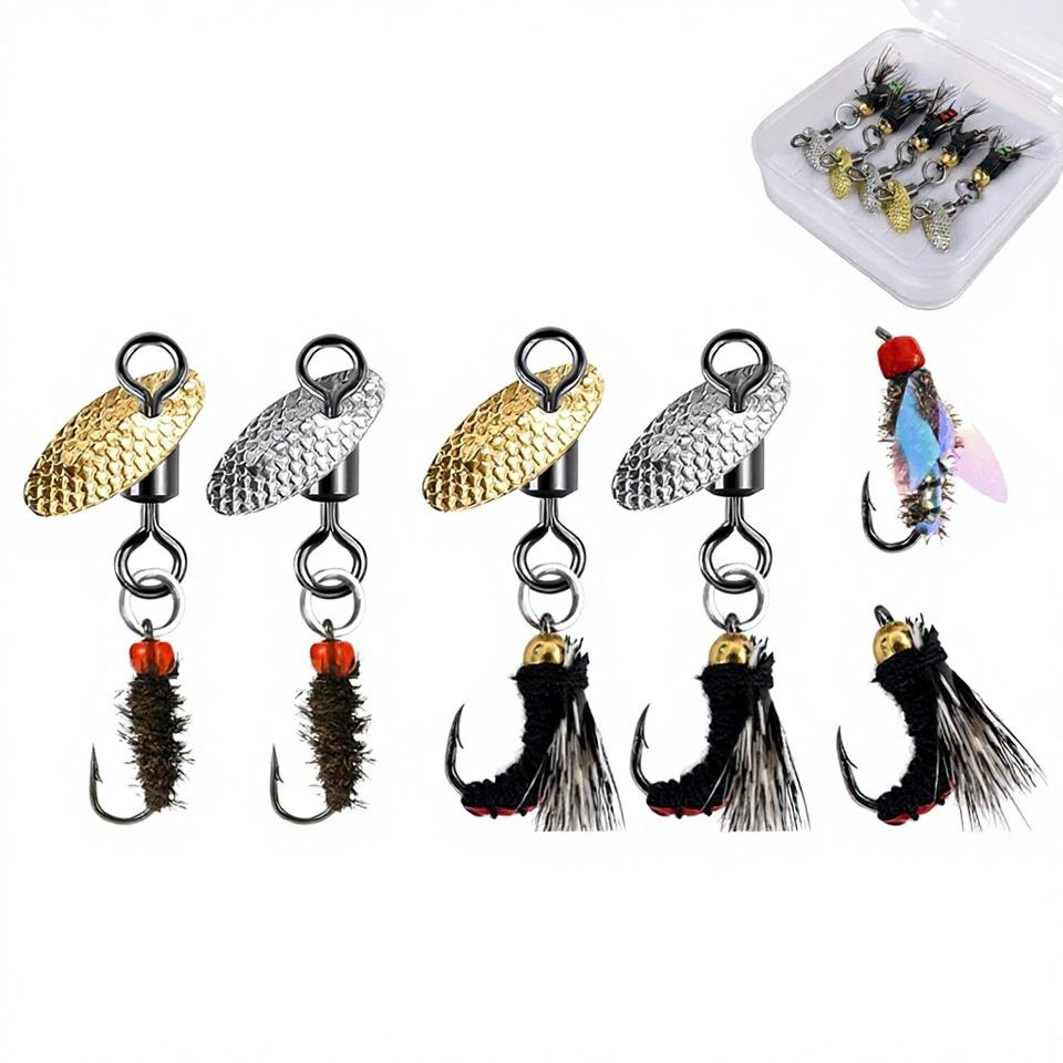 Juego de 5 piezas de señuelos de pesca con micro anzuelos tipo tiburón, recubiertos de epoxi, para pesca con mosca, atados a mano, con pelo sintético, imitación insecto/mosquito