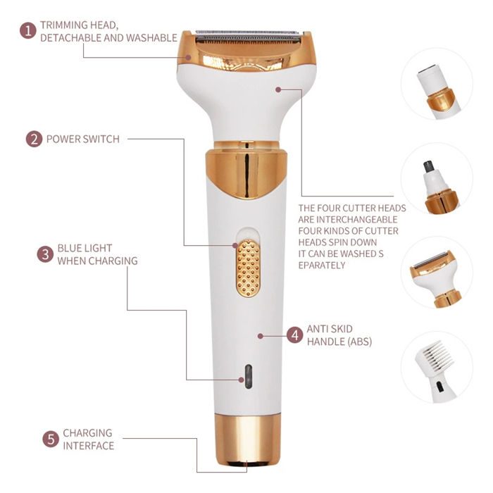 Afeitadora Recargable Multifuncional 4 en 1, Kit de Depilación para Mujer, Depiladora Facial Inalámbrica, Indolora