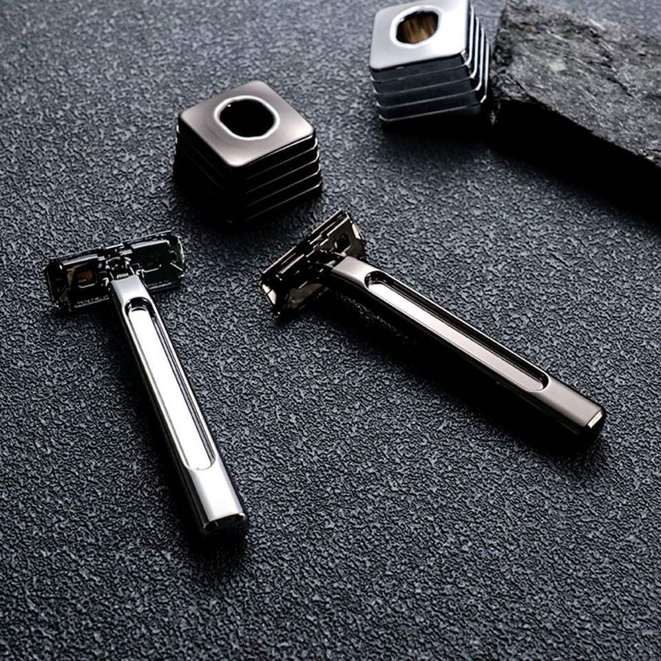 Maquinilla de Afeitar Ecológica de Doble Hoja, Diseño Innovador, Cabezal de Seguridad para Cara, Piernas y Cuerpo, Acero Inoxidable, para Hombres y Mujeres