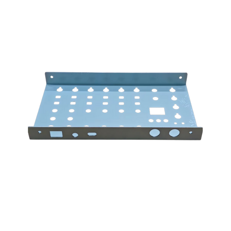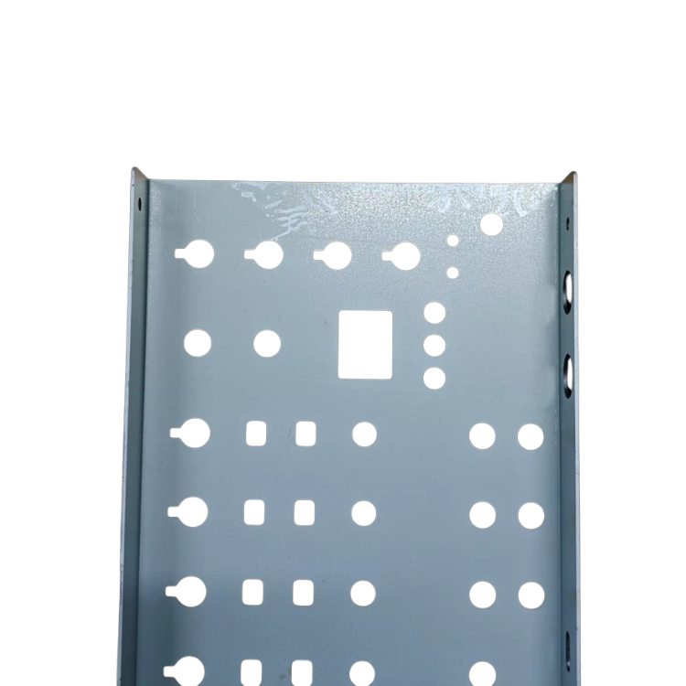 Pieza fabricada de chapa metálica con recortes doblados y recubrimiento en polvo para montar cubiertas de sistemas de paneles eléctricos en armarios