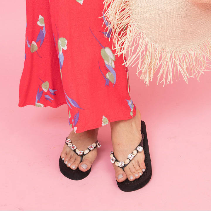 Sandalias de Playa con Plataforma Media y Piedras Decorativas