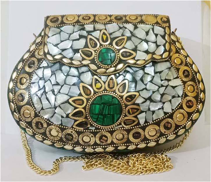 Bolso de Fiesta Estilo Bohemio GC-BG-540 para Mujer, al Mejor Precio, Moderno, con Carcasa Metálica y Mosaico, Estilo Rock, Exportador Indio