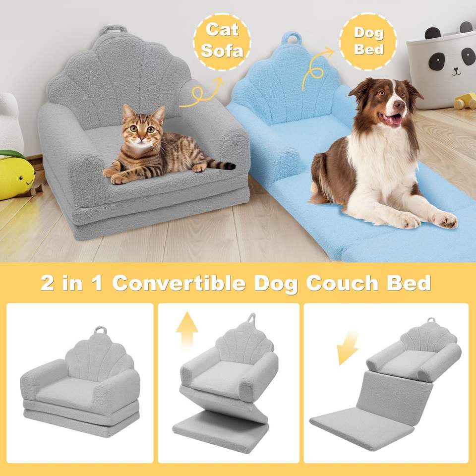 Cama para Perros Convertible en Forma de Concha, Sofá 2 en 1 para Mascotas con Funda Lavable a Máquina, Colores Elegantes, 22.8''x18.8''x15.7''