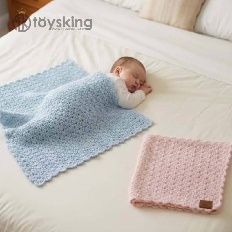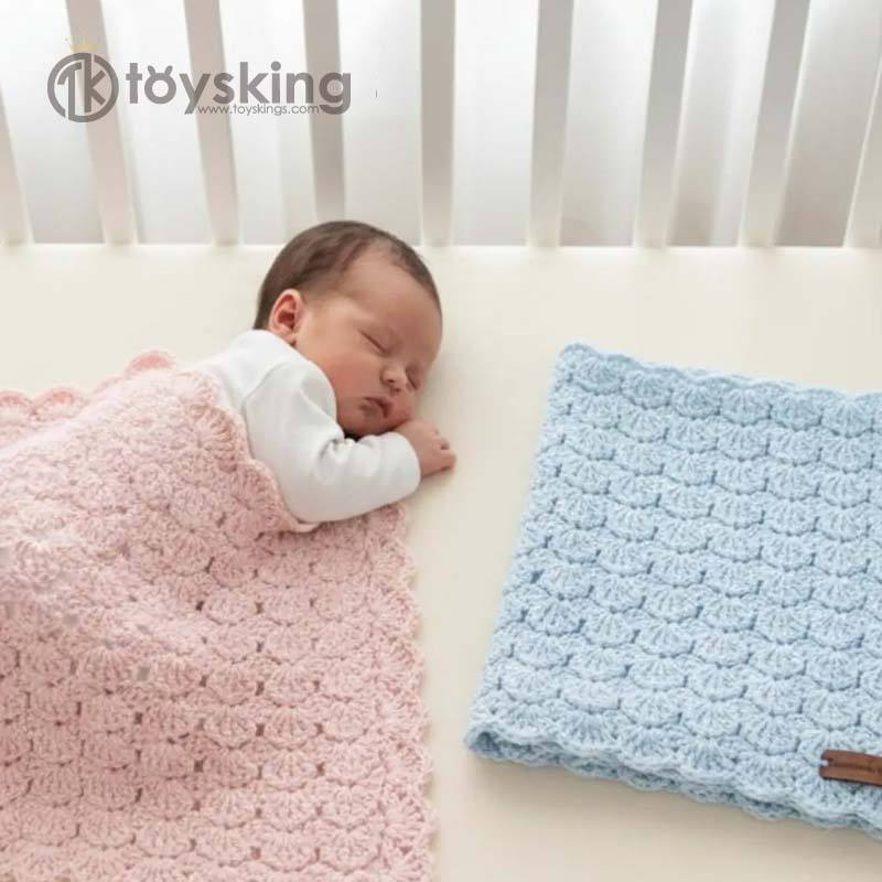 Manta de Ganchillo con Punto de Concha para Recién Nacido - Set de Regalo Ultra Suave para Bebé, Manta Tejida para Hospital y Bautizo