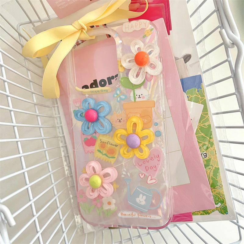 Funda de Teléfono con Textura de Concha y Flores 3D, Doble Capa Protectora para iPhone 16ProMax 15 14 13 12, Diseño Lindo y Moderno para Mujeres