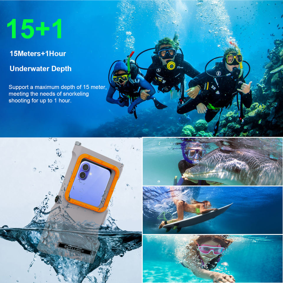 Funda Impermeable Universal para Teléfono ShellBox de Tercera Generación, Protección de Buceo de 50 Pies, Protección de 360 Grados para Teléfono con Obturador Remoto