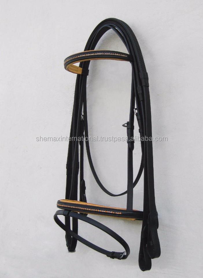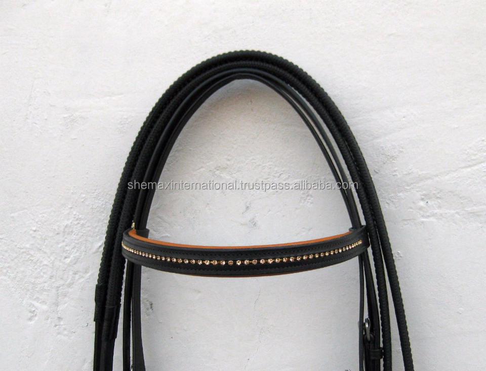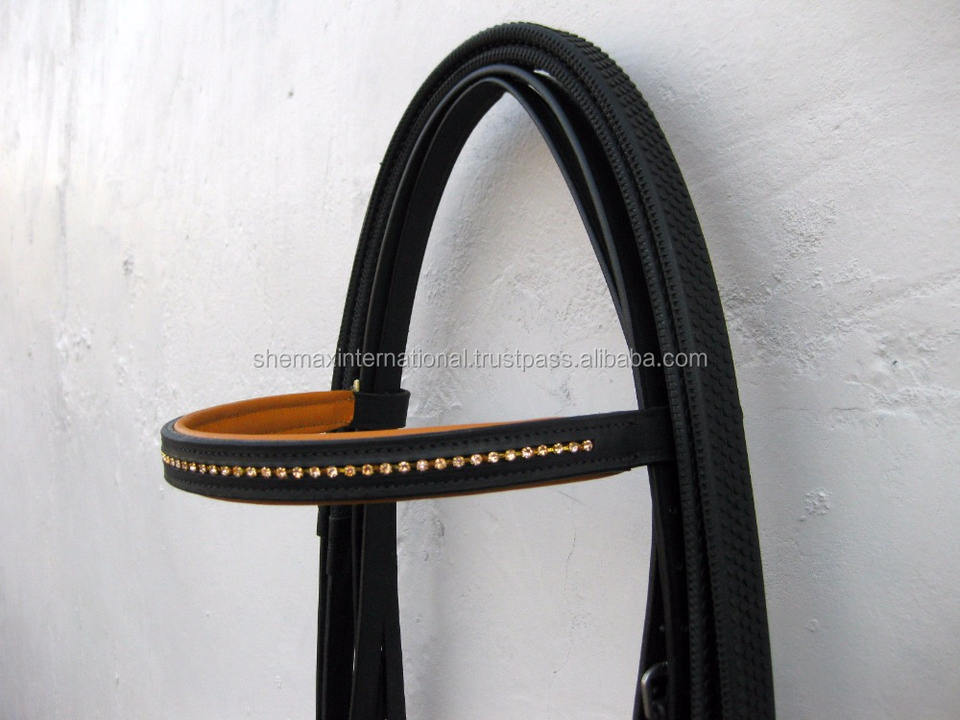 Shemax 2023 Alta Calidad Personalizado Al Por Mayor CABALLO DE CUERO DIAMANTE BRIDLE NEGRO/TAN ACOLCHADO DIAMANTES N/B Venta Caliente Halters