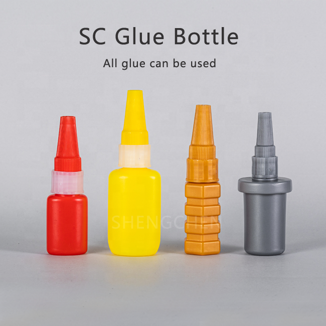 La botella vacía de súper pegamento se embala en bolsa de polietileno, bolsa tejida o cajas de cartón. U otras formas de embalaje según los requisitos del cliente.