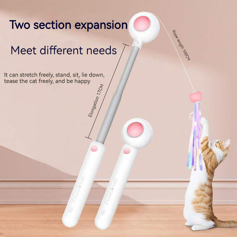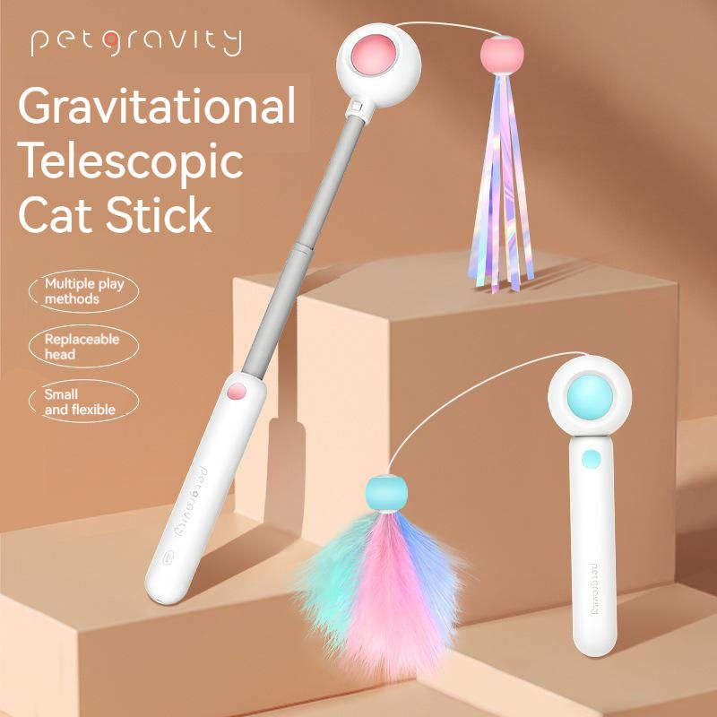 Shengfeng - Juguete Interactivo para Gatos, Varita Retráctil con Plumas y Cabezal Reemplazable