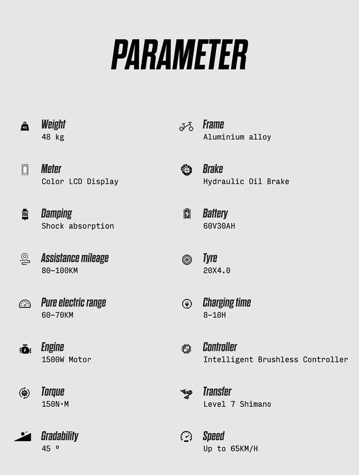 Bicicleta Eléctrica Shengmilo S900 de 1500W para Adultos, Neumático Grueso de 20x4.0, Batería de 60V 30Ah, Bicicleta Eléctrica Todoterreno