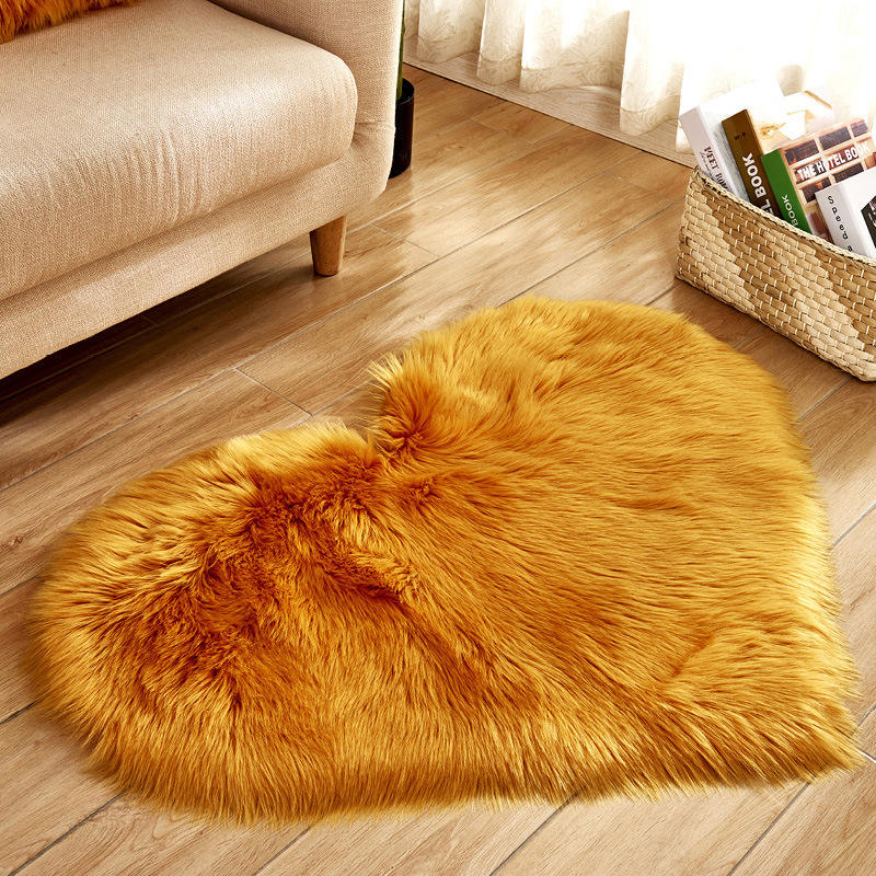Alfombra Shengxi en forma de corazón, de piel sintética rosa, antideslizante, para la decoración de la sala de estar y el dormitorio.