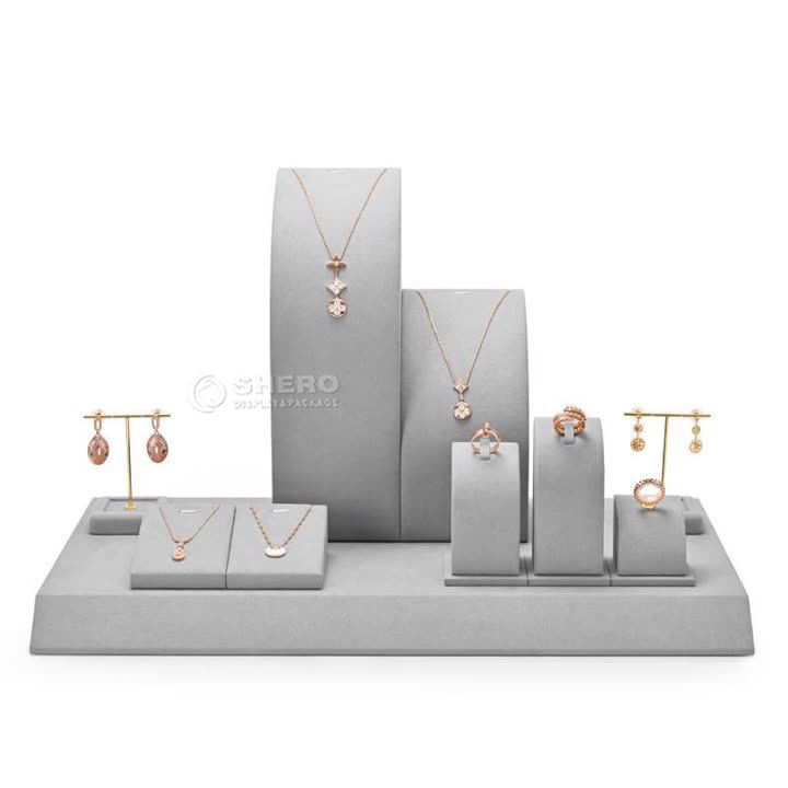Shero alta gama gris microfibra lujo Pu cuero pendiente anillo colgante joyería soporte de exhibición conjunto