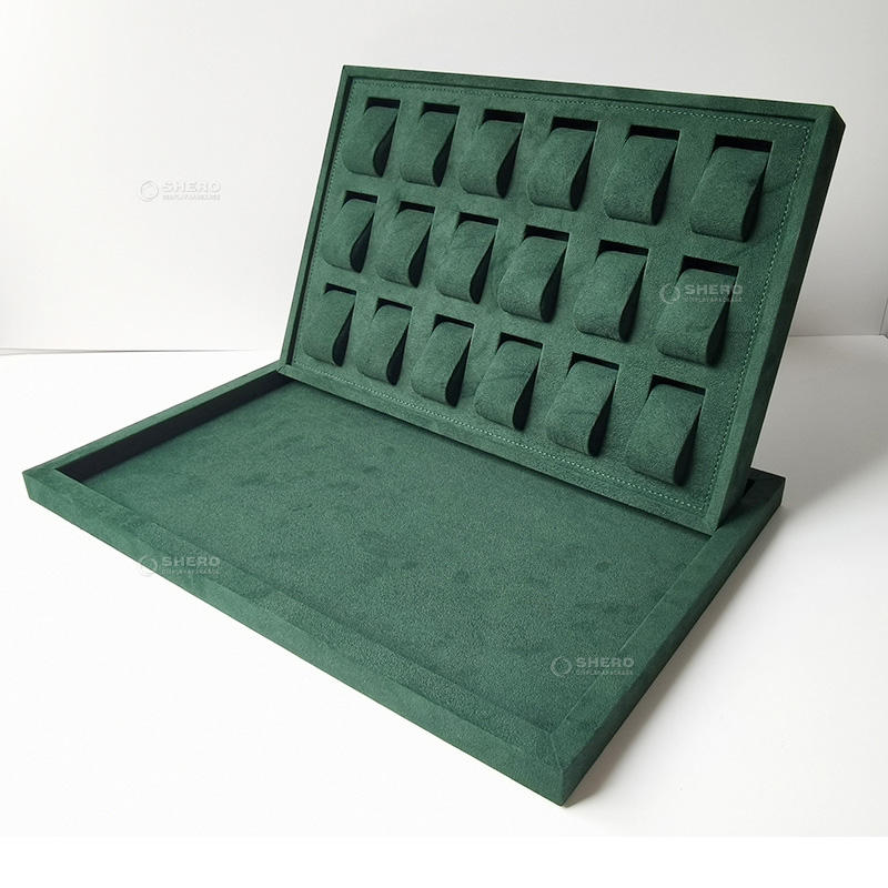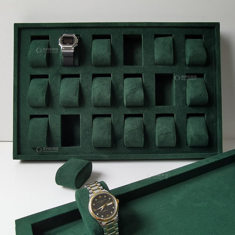 Bandeja de exhibición de relojes de alta gama Shero, material MDF con forro de microfibra suave, color personalizado para colección de relojes de lujo.