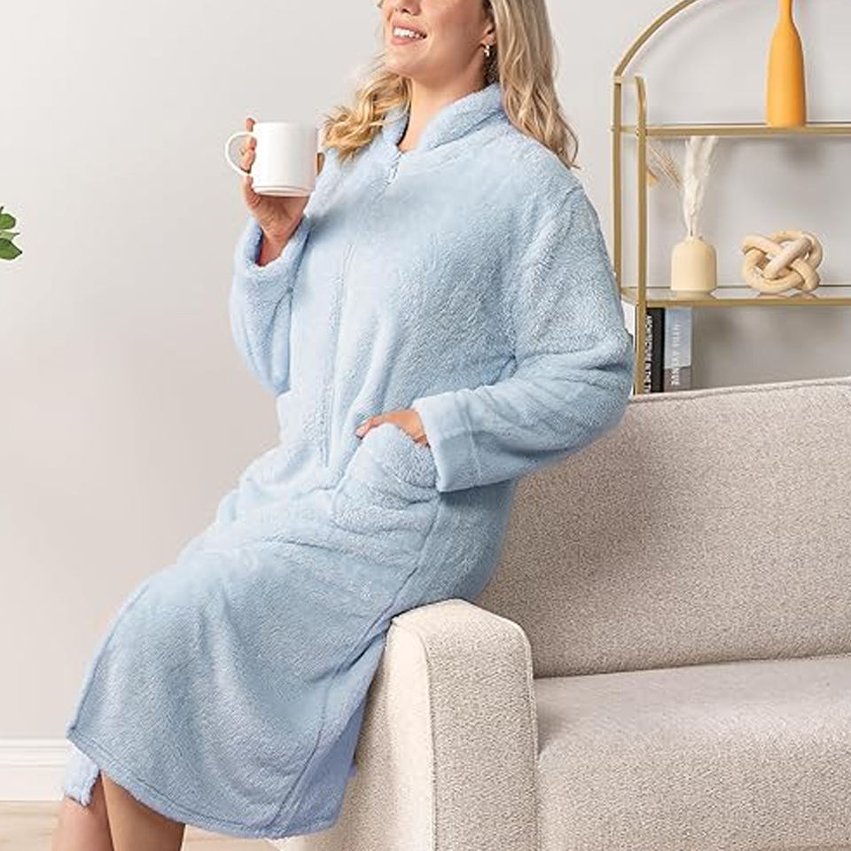 Bata de baño Sherpa con cremallera frontal, cálida y esponjosa, con bolsillos, para mujer y hombre, para estar en casa