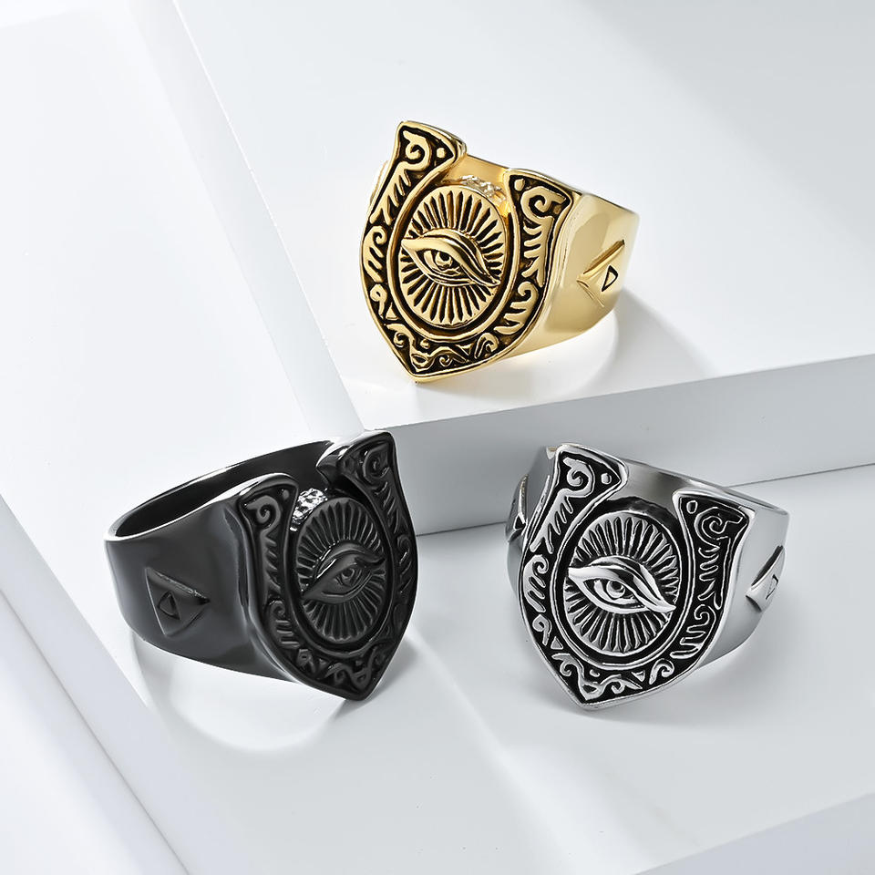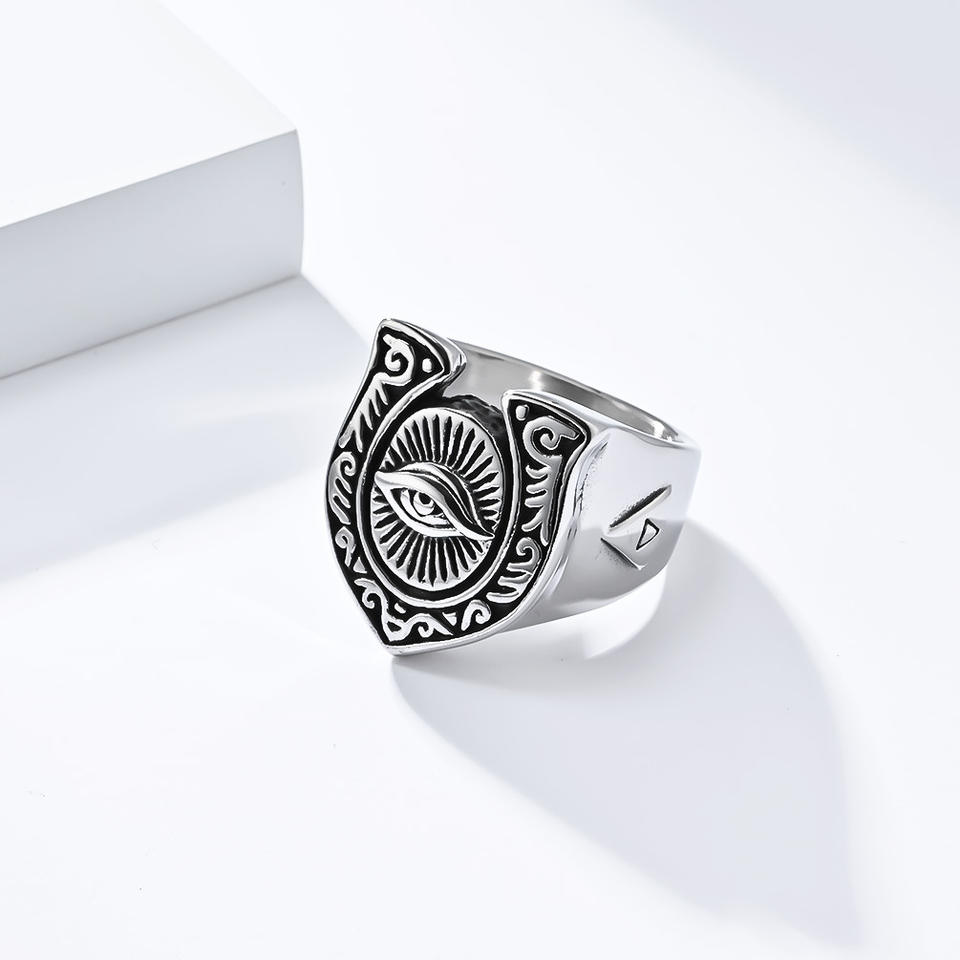 Anillo de Acero de Titanio con Forma de Escudo y Ojo Turco, Joyería de Moda Unisex, Regalo en Oro, Negro y Plata