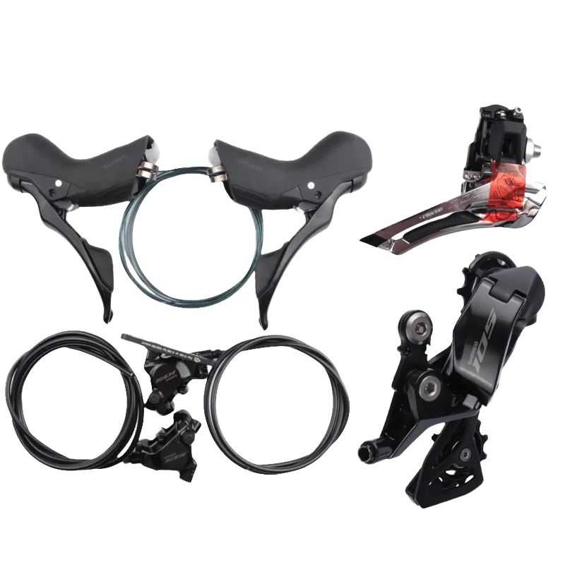 Juego de frenos de disco hidráulicos Shimano 105 R7120/R7170 2x12s (delantero y trasero), desviador, cambiador y pastillas — componentes esenciales para bicicleta