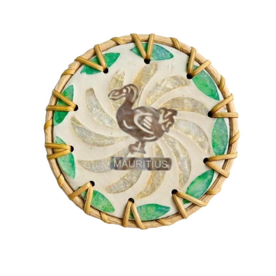 Posavasos de Concha Colorido Brillante con Borde de Ratán Trenzado, Moderno, Estilo Boho, Resistente al Calor, Regalo Único Hecho a Mano