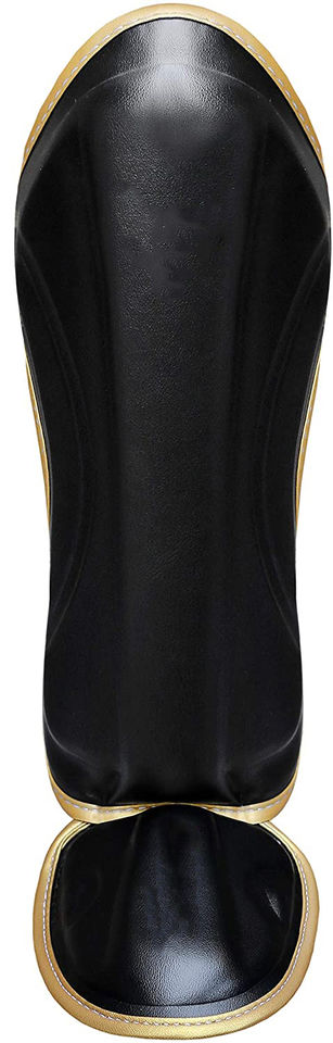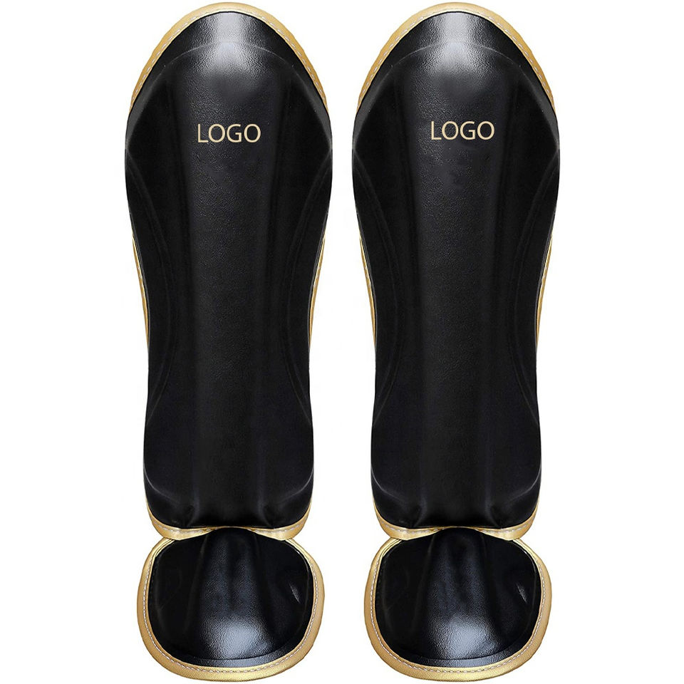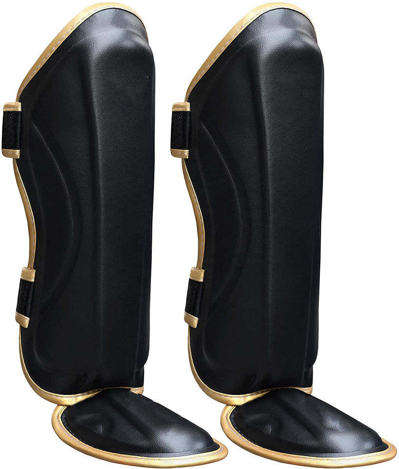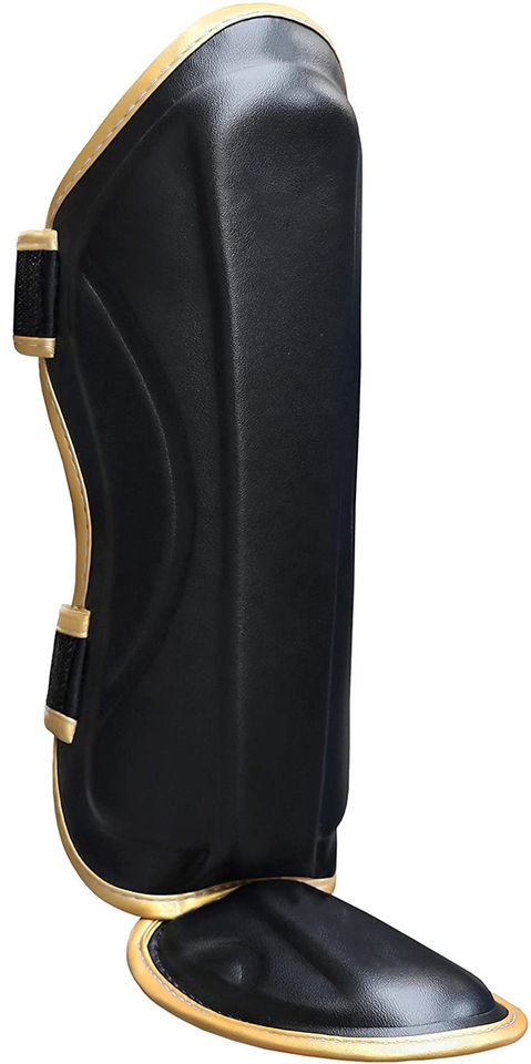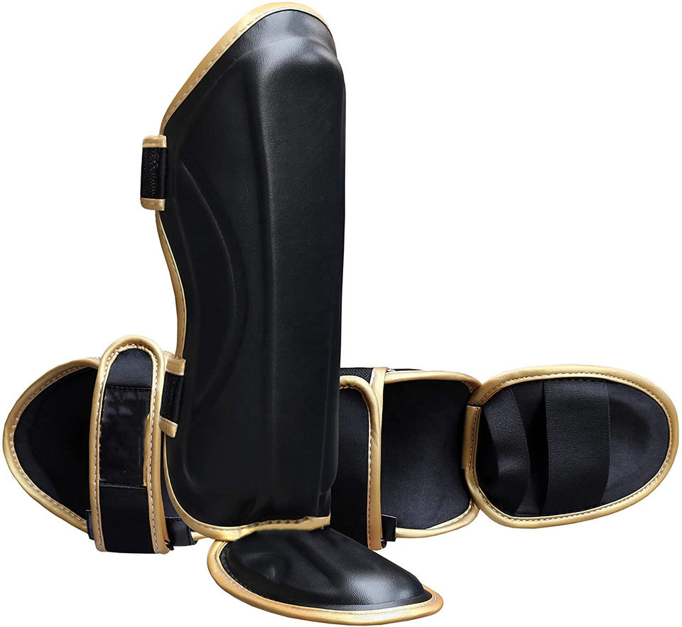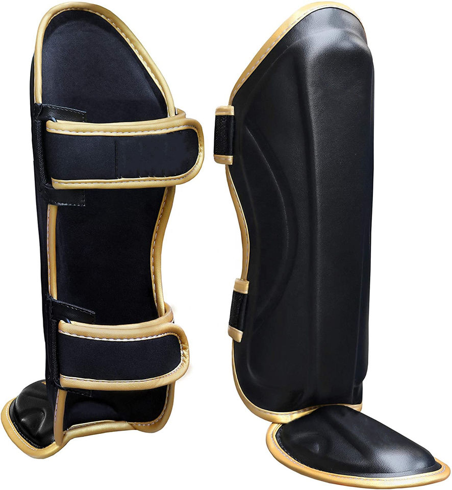 Espinilleras para boxeo con correa larga para un ajuste seguro, diseño compacto y ligero.