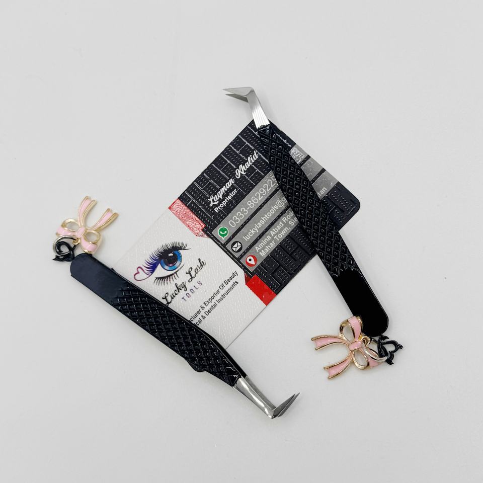 Pinzas para Pestañas de Acero Inoxidable Negro Brillante con Puntas de Precisión, Dijes de Lazo, Marca Privada Personalizada, Empuñaduras de Diamantes, Pinzas para Pestañas de 90 Grados