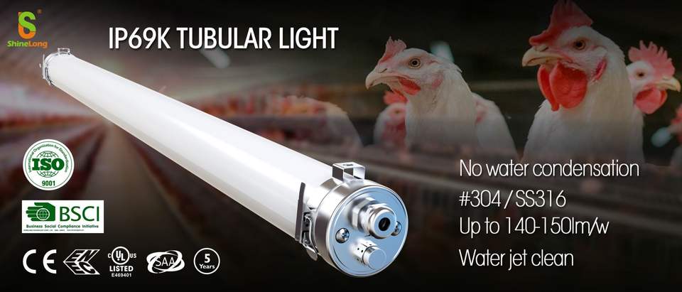 Lámpara LED ShineLong IP69K para Aves de Corral, 5000K Luz Diurna, 150 Lm/W, Regulable, Garantía de 5 Años, para Uso en Granjas