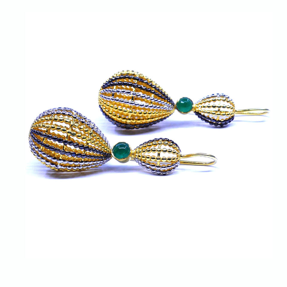 Plata brillante de Ley 925, piedras preciosas Esmeralda chapadas en oro, proveedor de joyería clásica, pendientes de uso diario