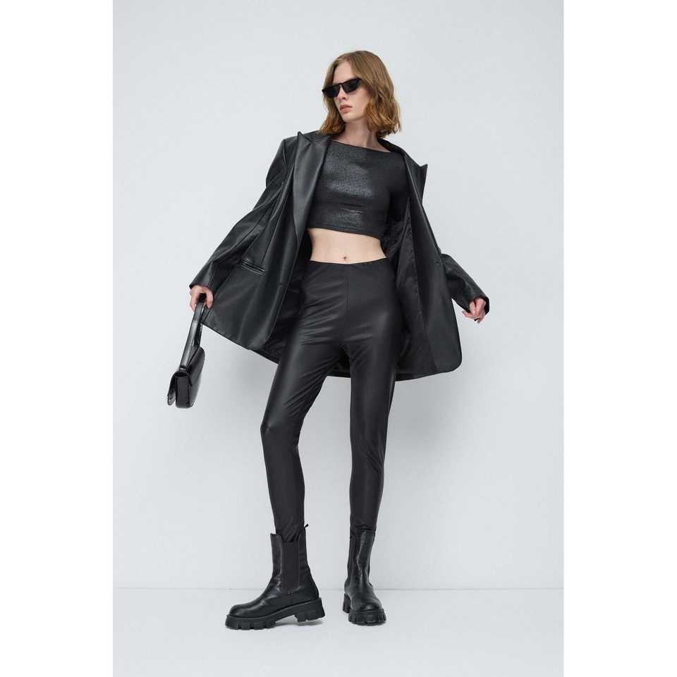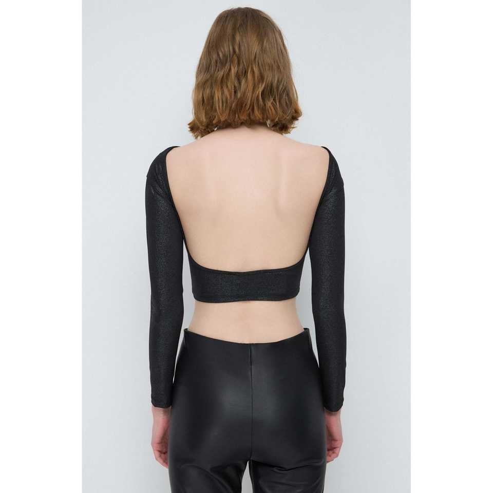 Top Corto Básico Brillante con Espalda Descubierta