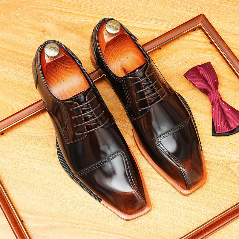 Punta de Cuchilla Brillante, Estilo Retro, Versátil, Casual, Formal, a la Moda, con Combinación de Colores, para Negocios, Bodas, Otoño, Cuero Genuino