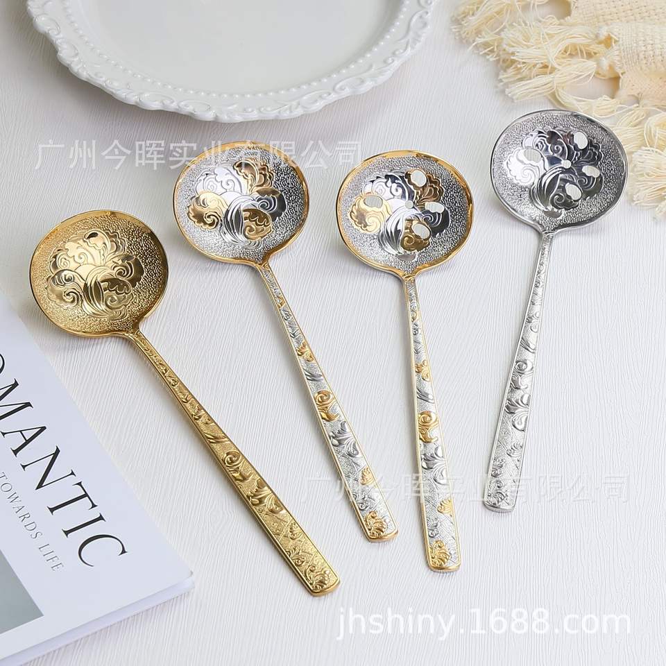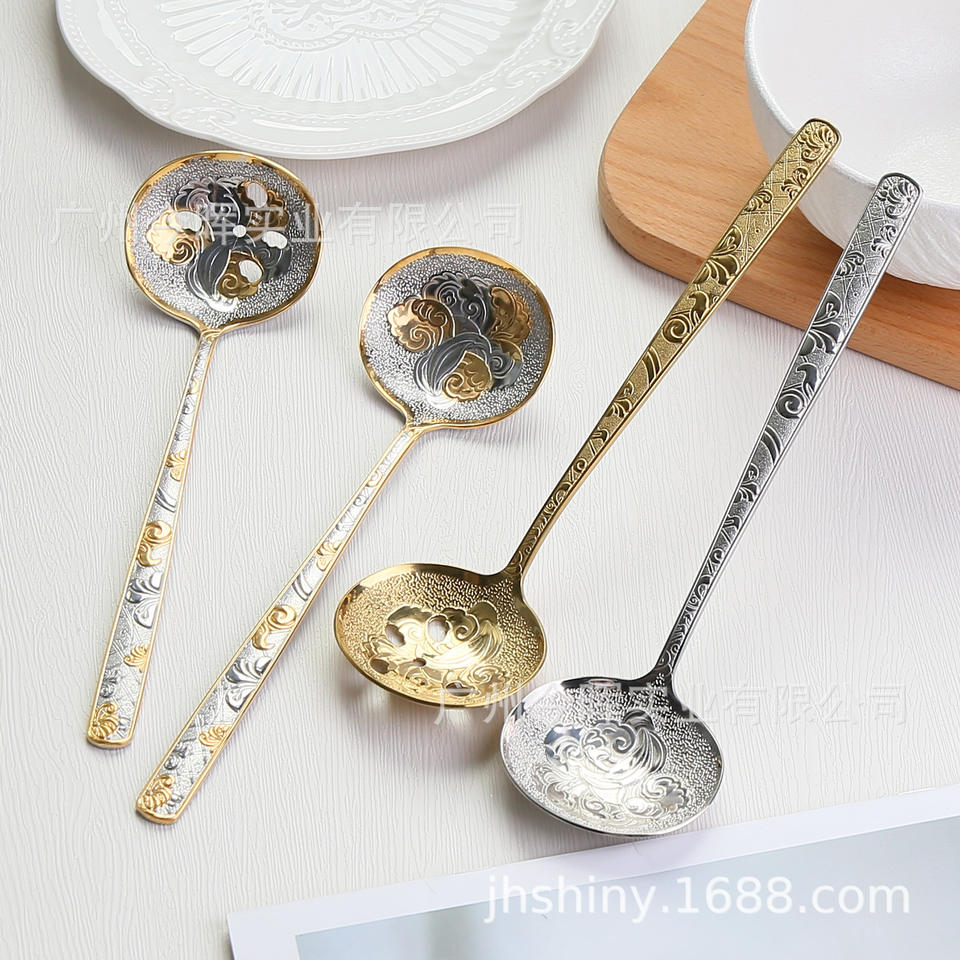 Cuchara Coladora de Acero Inoxidable 304 con Diseño Floral Repujado Estilo Francés Shiny-Jh, Elegante Diseño de Corte para el Hogar