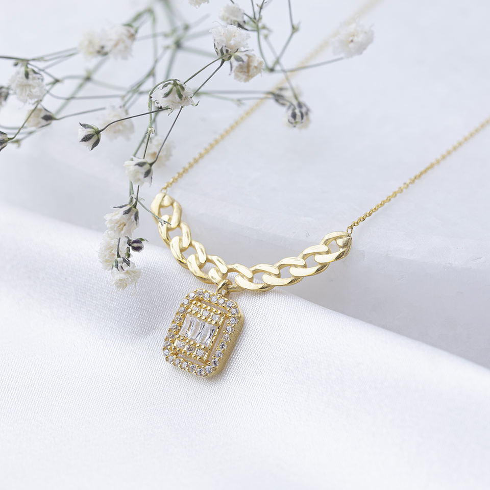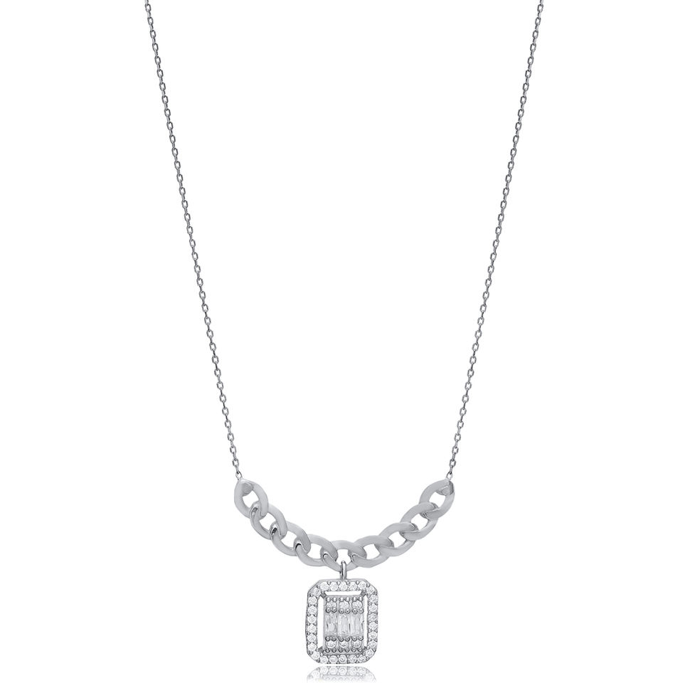 Brillante rectángulo forma CZ piedra encanto collar venta al por Mayor turco 925 joyería de plata mujeres colgante