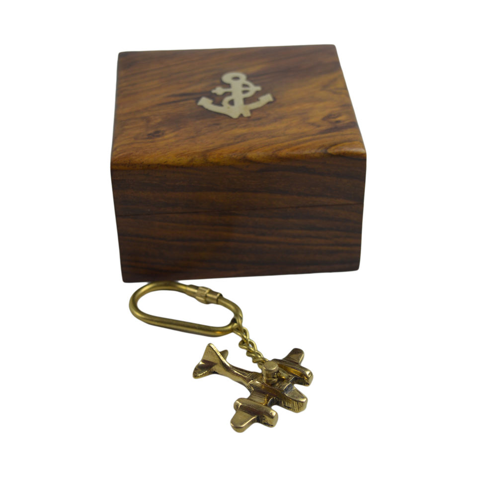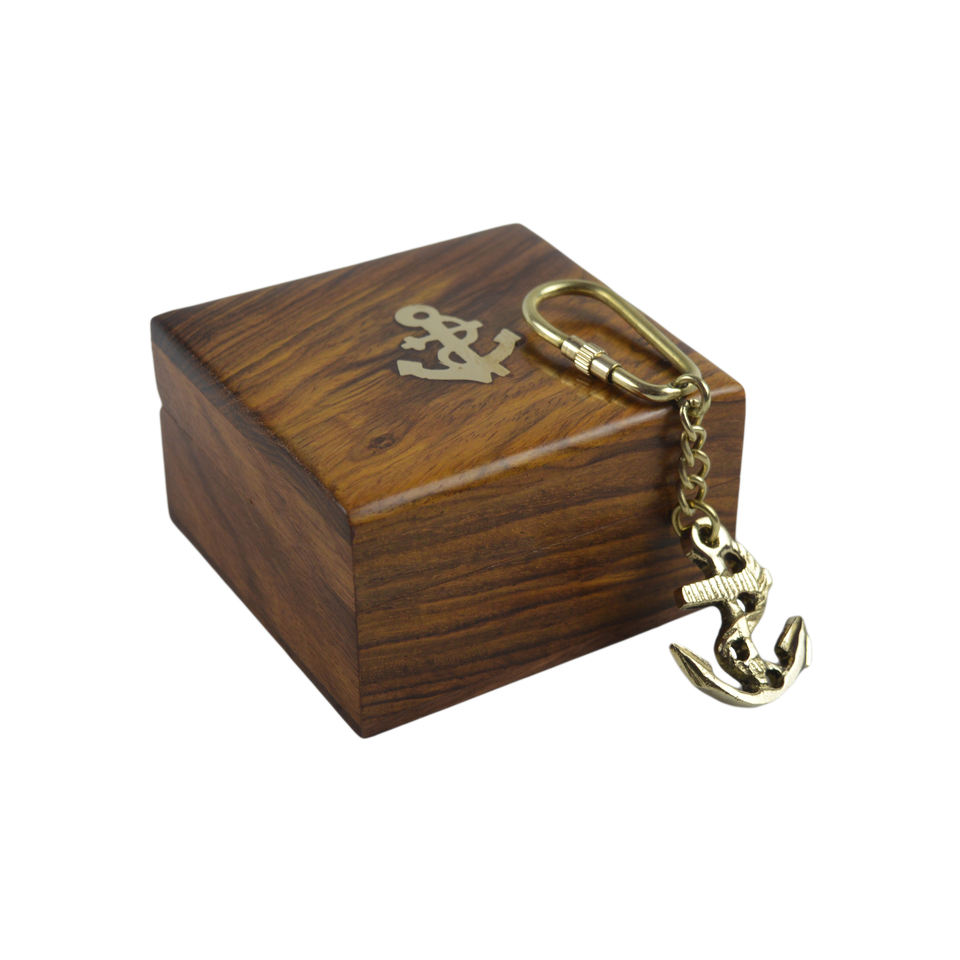 Llavero de latón con diseño de tema brillante, lo mejor para decoración del hogar, llavero con acabado pulido con caja de madera, llavero náutico, decoración