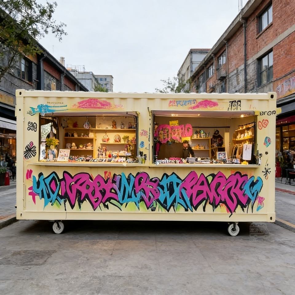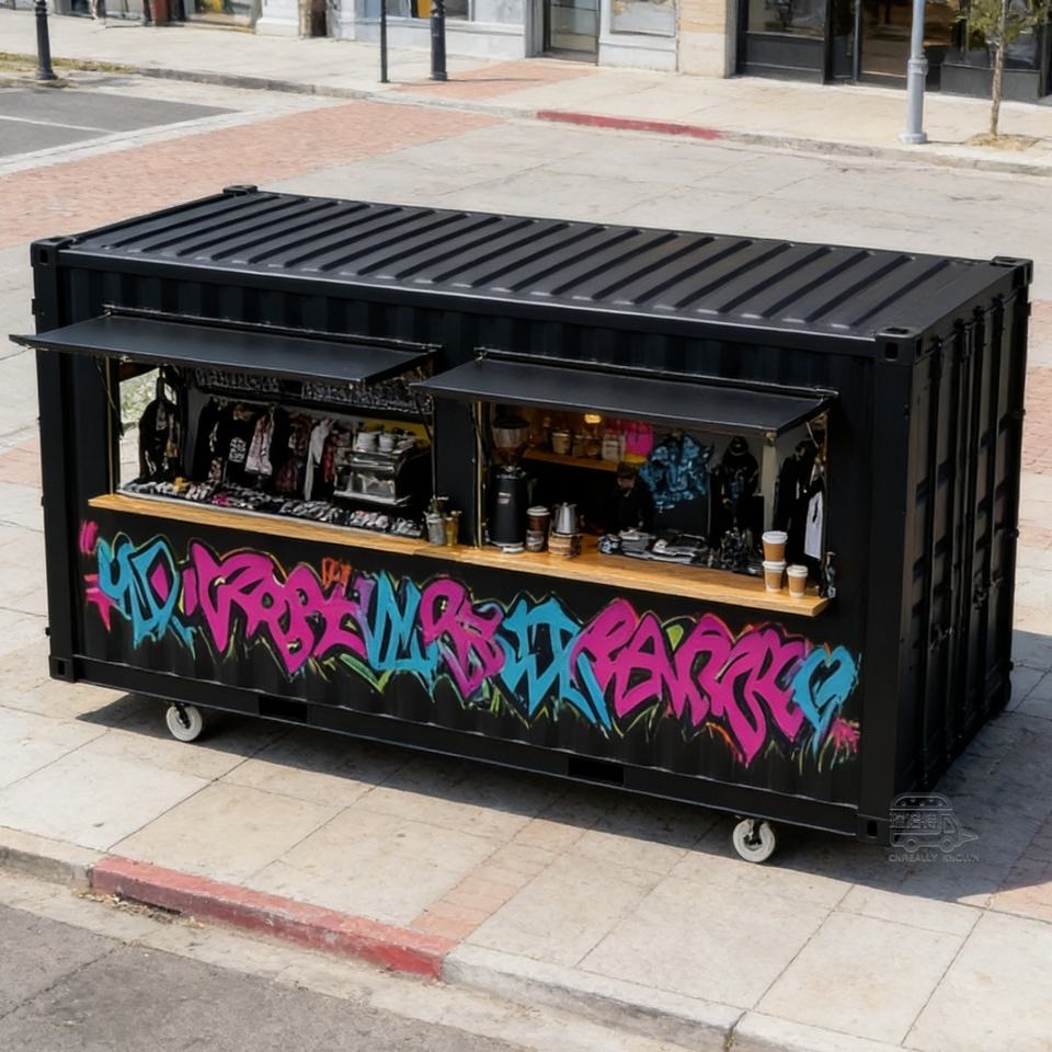 Contenedor de Envío Convertido en Cafetería, Cocina Móvil, Restaurante, Quiosco de Comida de Acero, Diseño Modular Prefabricado para Negocios, Tiendas y Casas