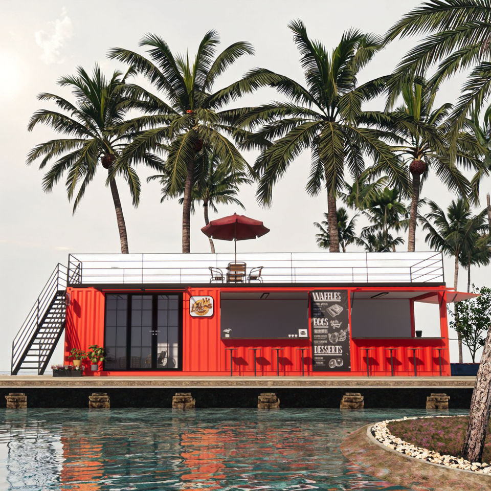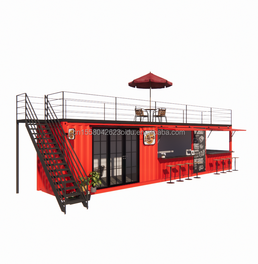 Contenedor Marítimo Remodelado de 40 pies con Ventana Abatible, Ventanas de Aleación de Aluminio, Color Personalizado, para Escuela, Sala de Estar, Cocina, Bar de Playa