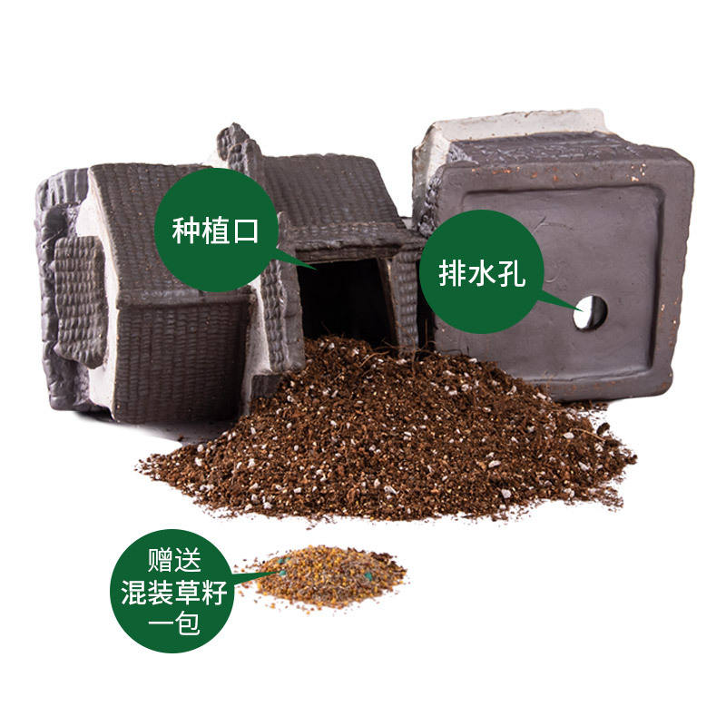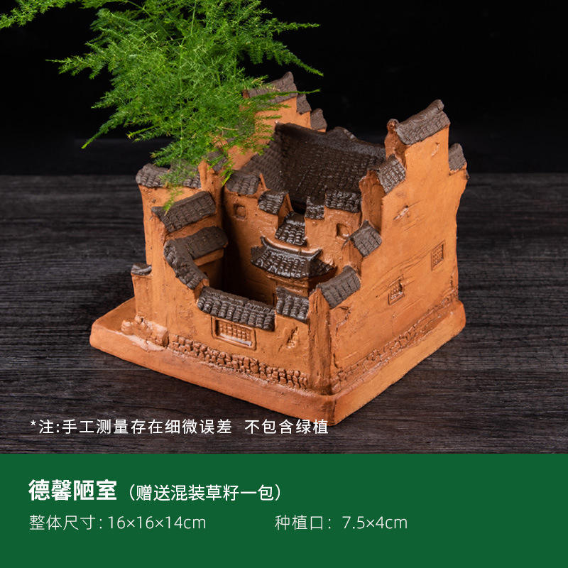 Shiqu retro chino tridimensional multicapa combinación Casa de cerámica maceta con chasis pequeños agujeros Mesa colocada B