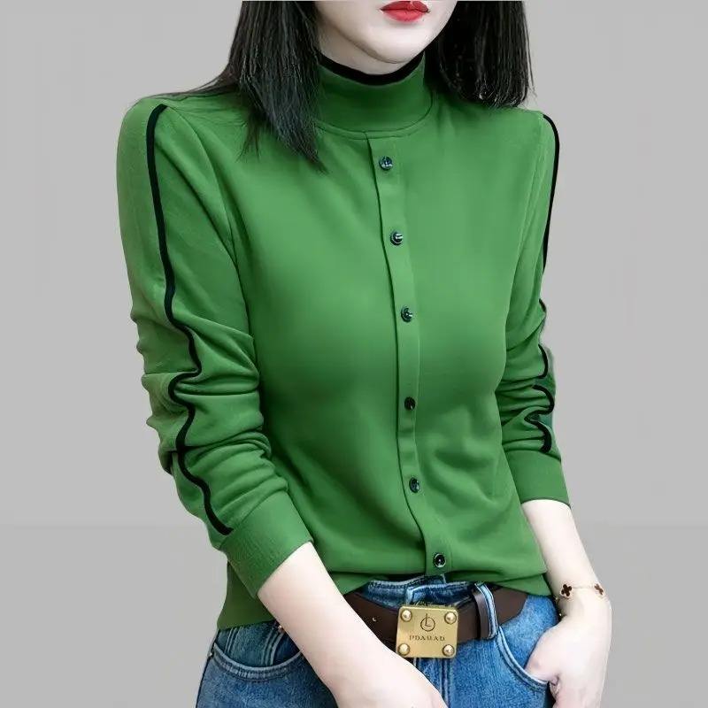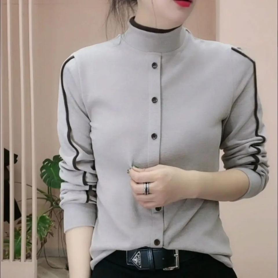 Camisa de Otoño e Invierno, Nuevo Estilo, Cuello Alto de Manga Larga, Holgada y Moderna para Mujer