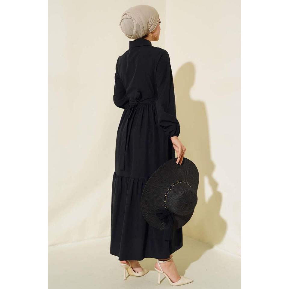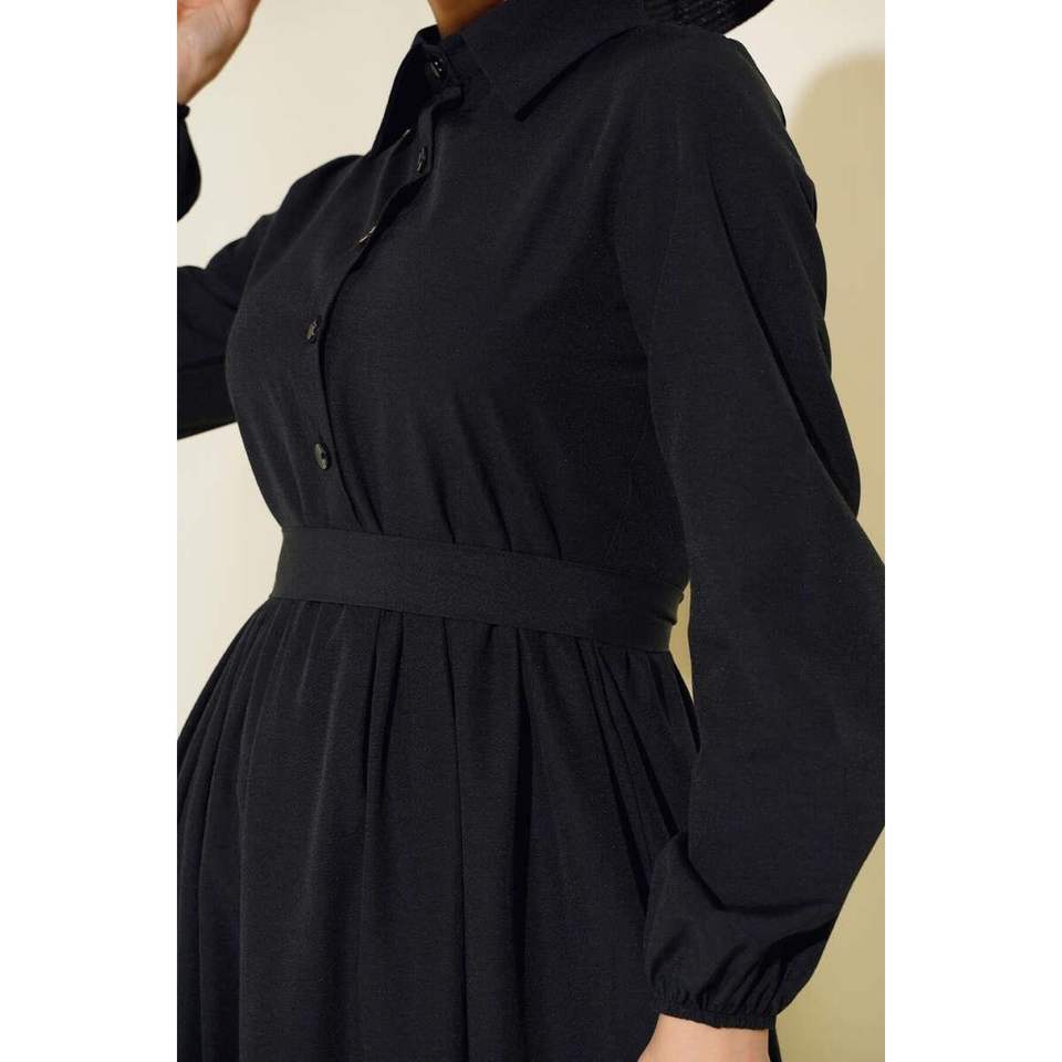 Vestido a capas cuello camisa negro