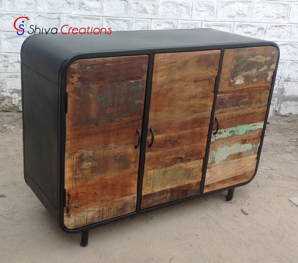 Product name:Industrial Metal Structure 3 Wooden Doors Living Room Storage Cabinet