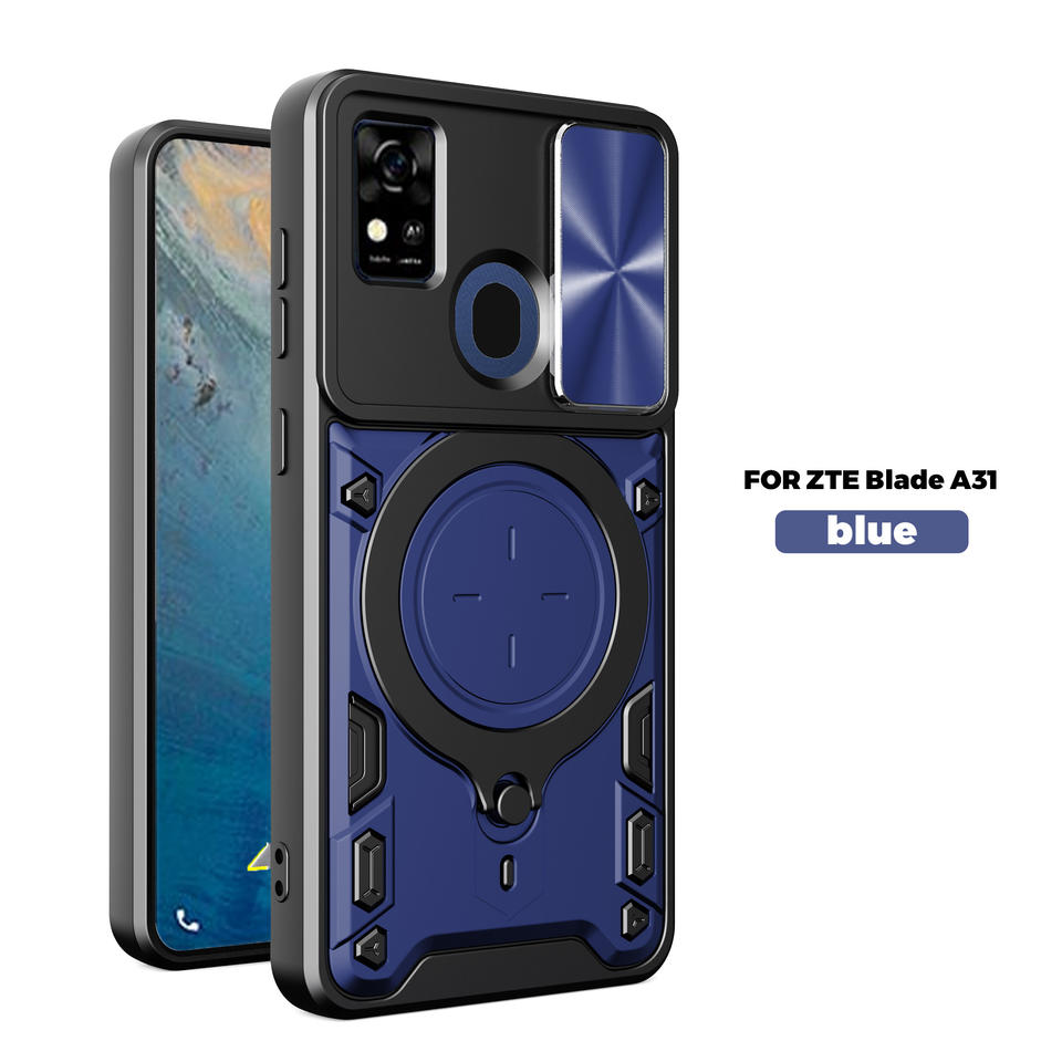 A prueba de golpes TPU PC cubierta Cámara proteger anillo titular armadura teléfono caso para ZTE Blade A31