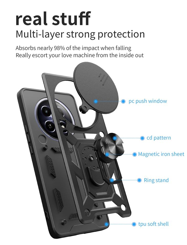 A prueba de golpes con soporte para cámara funda protectora para teléfono para OPPO Realme 12 5G Note 13 Pro Plus