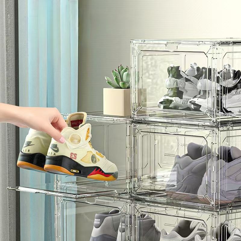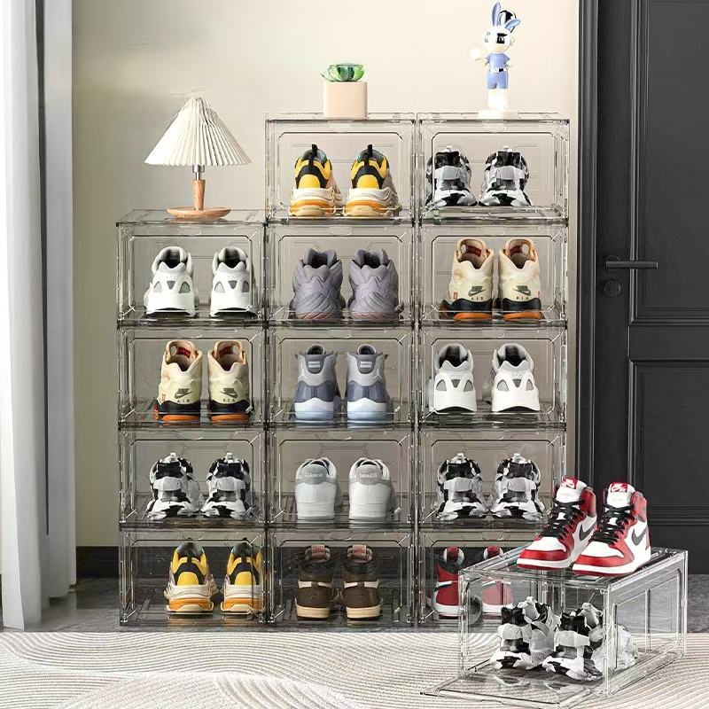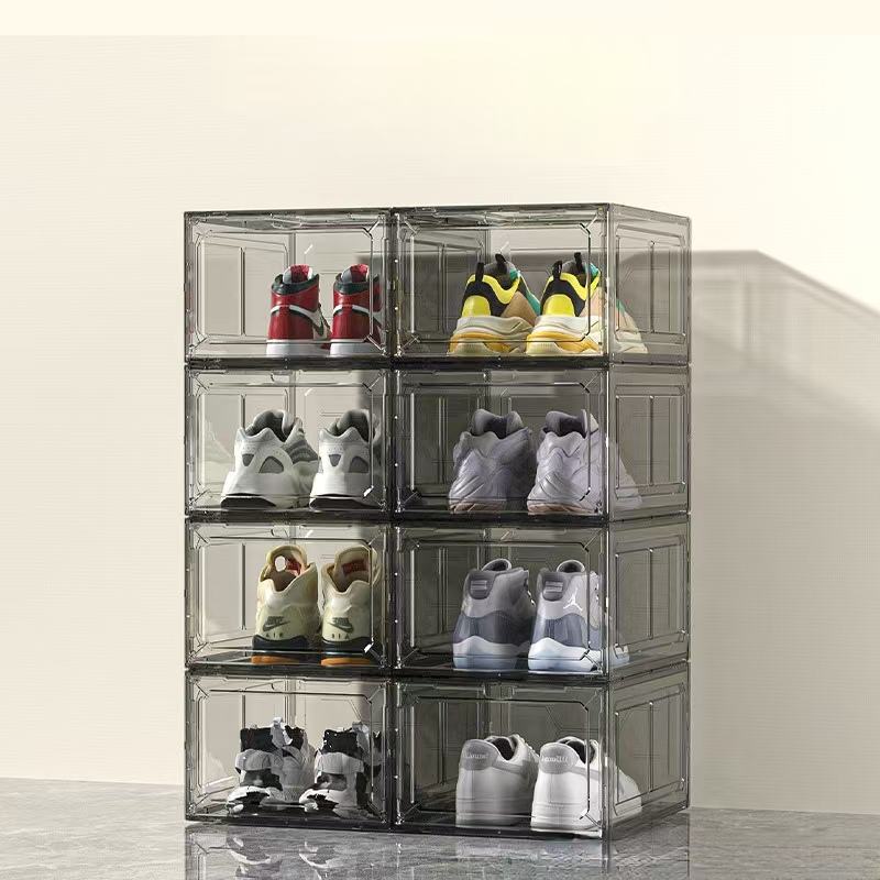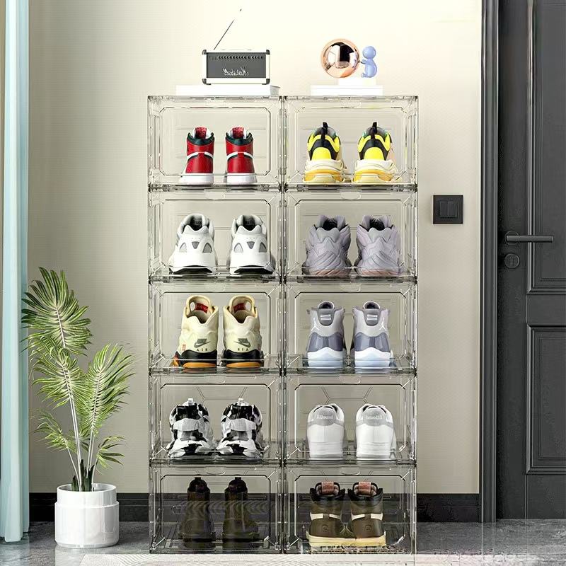 Caja de almacenamiento de zapatos con puerta transparente para almacenamiento de zapatos deportivos caja de zapatos transparente apilable fácil de montar