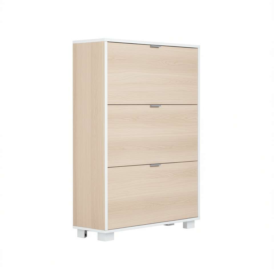 Zapatero con 3 Puertas Abatibles en Madera Melamina L76xH118xD30 Cemento
