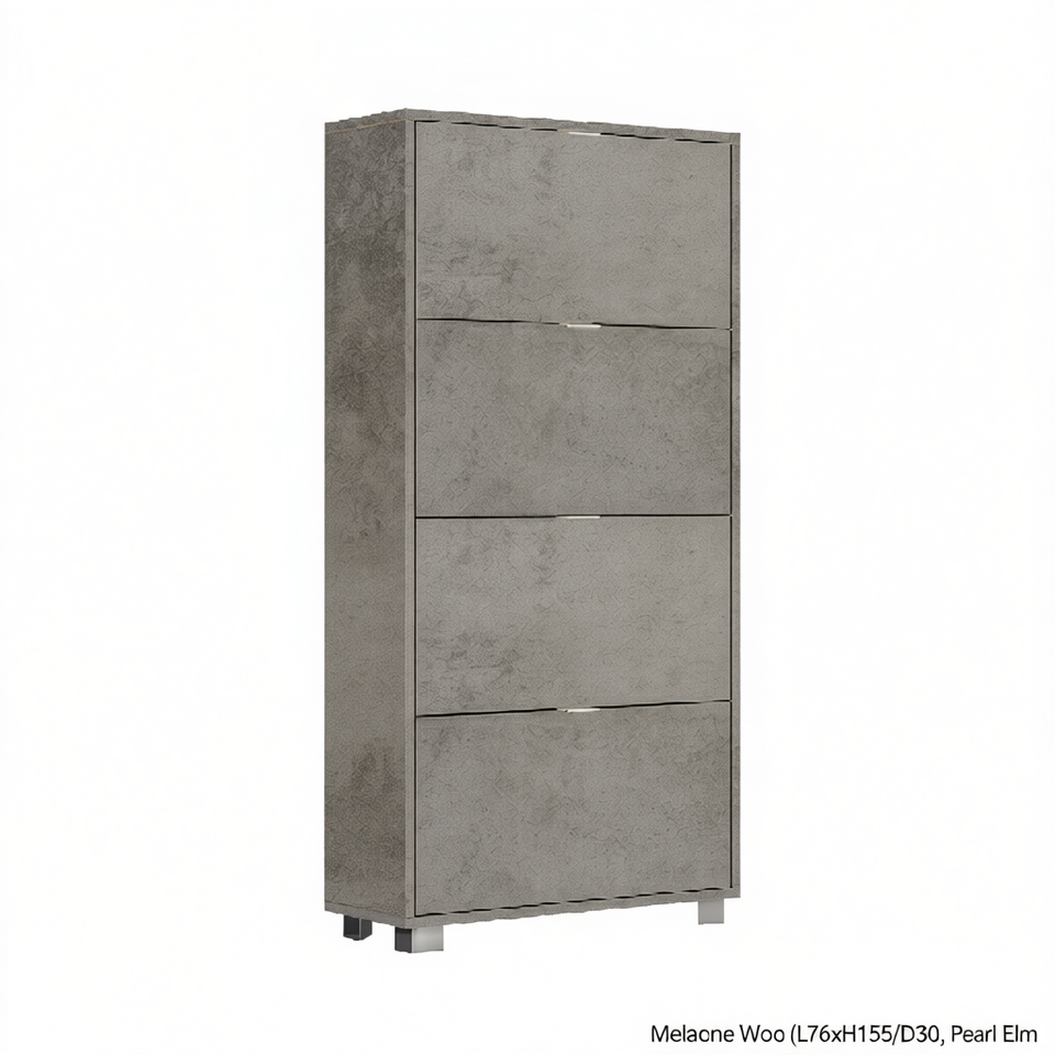 Zapatero con 4 Puertas Abatibles en Madera de Melamina L76xH155xD30 Perla Olmo