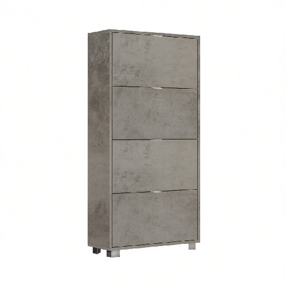 Zapatero con 4 Puertas Abatibles en Madera Melamina L76xH155xD30 Cemento