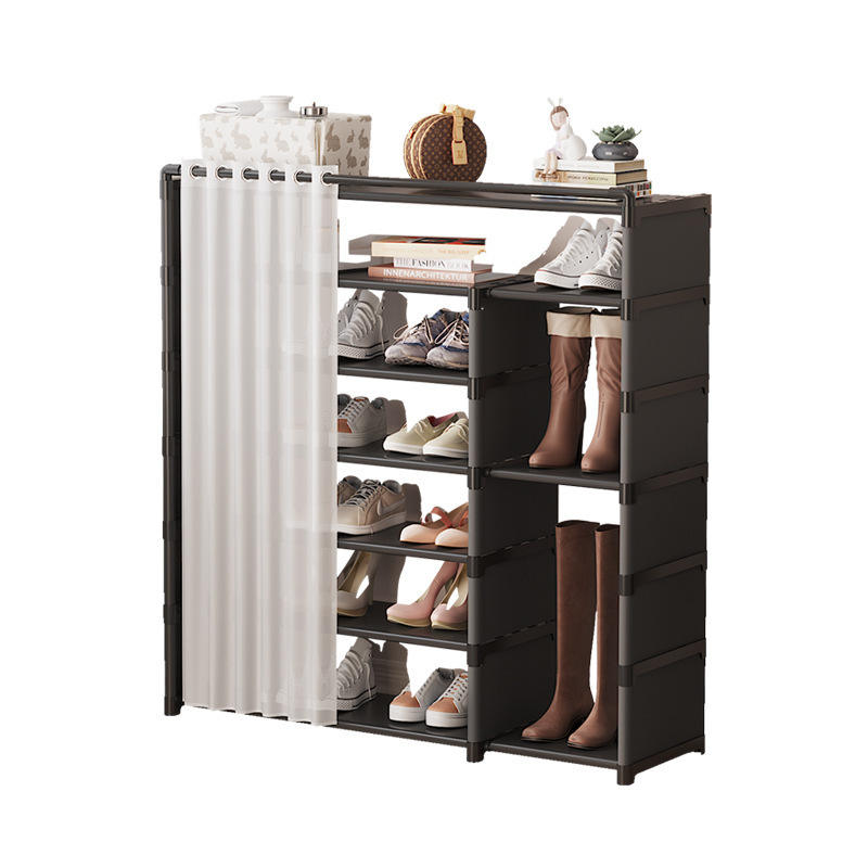 Zapatero con cortina, a prueba de polvo, para entrada, uso interior, gran capacidad, ahorro de espacio, zapatero independiente.