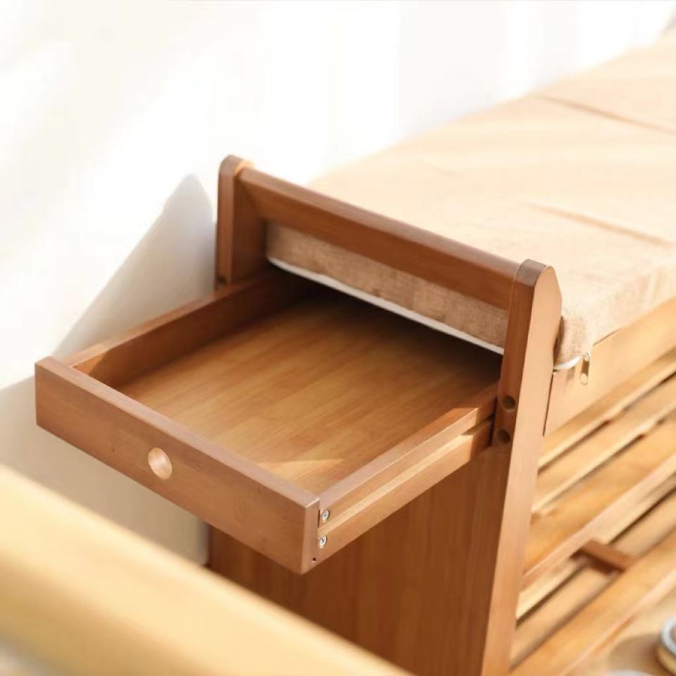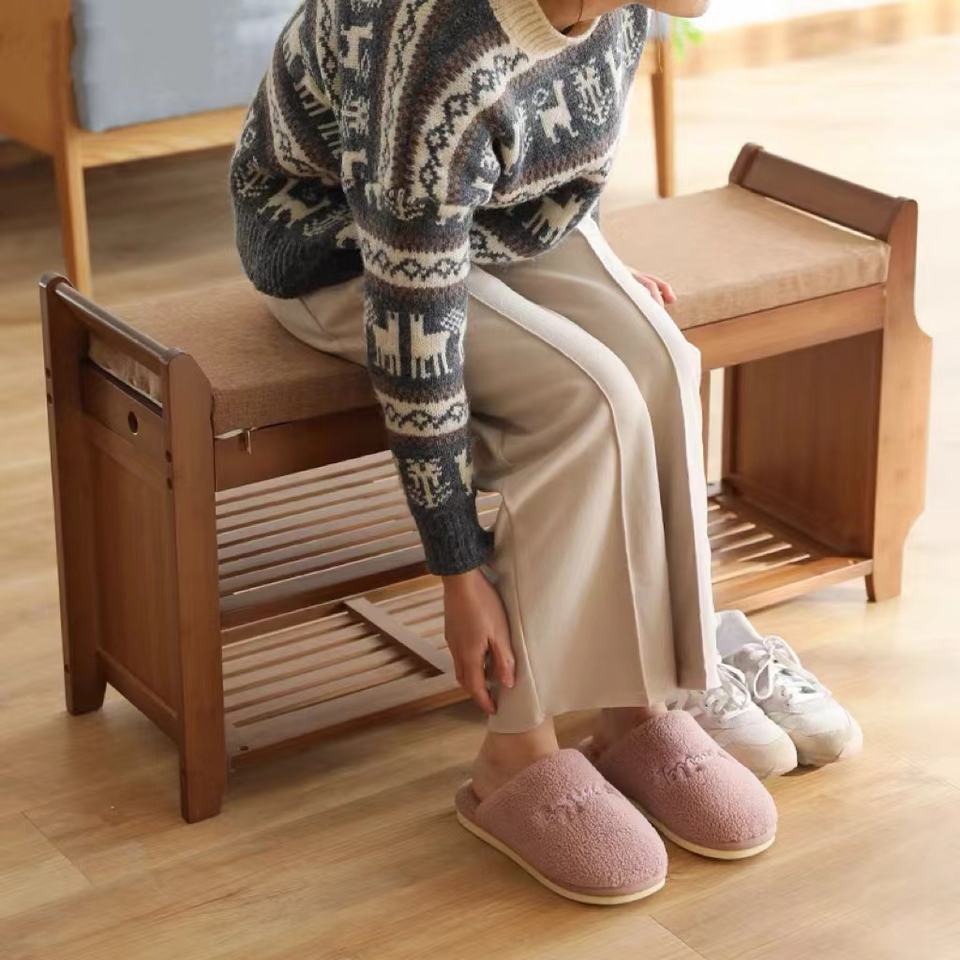 El taburete de almacenamiento de zapatos es adecuado para el taburete de la sala de estar del pasillo, marco de dos capas, arreglo de artículos diversos de bambú multifuncional