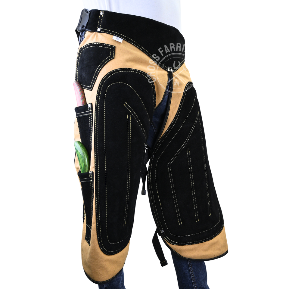 Material:Piel herrier delantal cuero herrier CHAPS con 4 bolsillos caballo