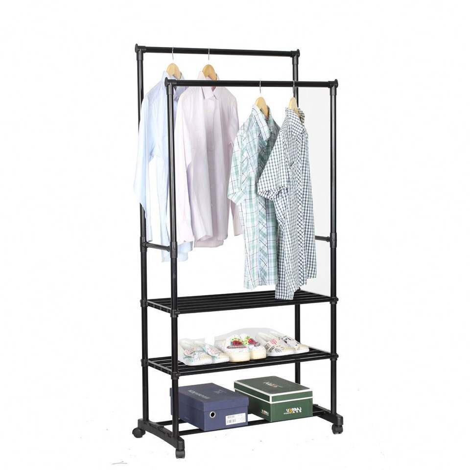 Nombre:Rack de ropa doble con estantes