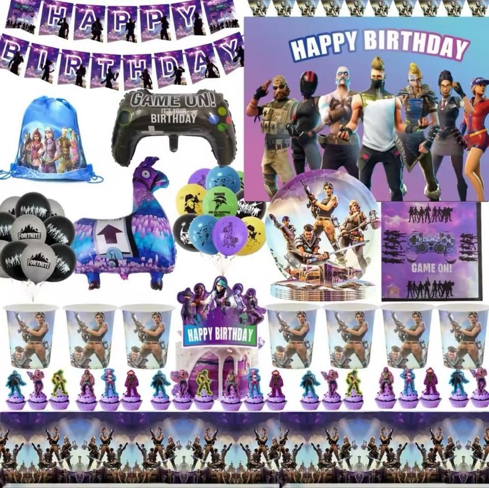 Juego de disparos Fortnition, decoración de fiesta de cumpleaños, plato, taza, dibujos animados, Alpaca, Llama, Globos de aluminio, Baby Shower, suministros para fiestas infantiles